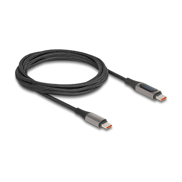"DeLOCK USB 2.0 Data and Fast Charging Cable USB Type-C male to male PD 3.0 100 W with power indication 2 m. Cable length: 2 m. Connector 1: USB B, Connector 2: USB C, USB version: USB 2.0, Maximum data transfer rate: 0.48 Gbit/s, Product colour: Black"\n"This USB cable by Delock enables the connection between a device with a USB Type-C™ connector and a PC or a laptop equipped with a free USB Type-C™ port. The integrated E-Marker chipset supports the PD 3.0 function for fast charging with a charging power of up to 100 W. With a length of approx. 2 m, devices can also be connected over longer distances without any problems.