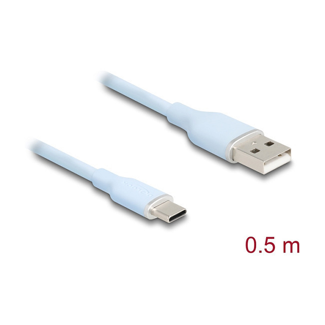 "DeLOCK 81221. Cable length: 0.5 m. Connector 1: USB A, Connector 2: USB C, USB version: USB 2.0, Maximum data transfer rate: 0.48 Gbit/s, Connector contacts plating: Gold, Product colour: Blue"\n"This USB cable by Delock enables the connection between a device with a USB Type-C™ connector, e.g. a smartphone, and a PC or laptop equipped with a USB Type-A port.