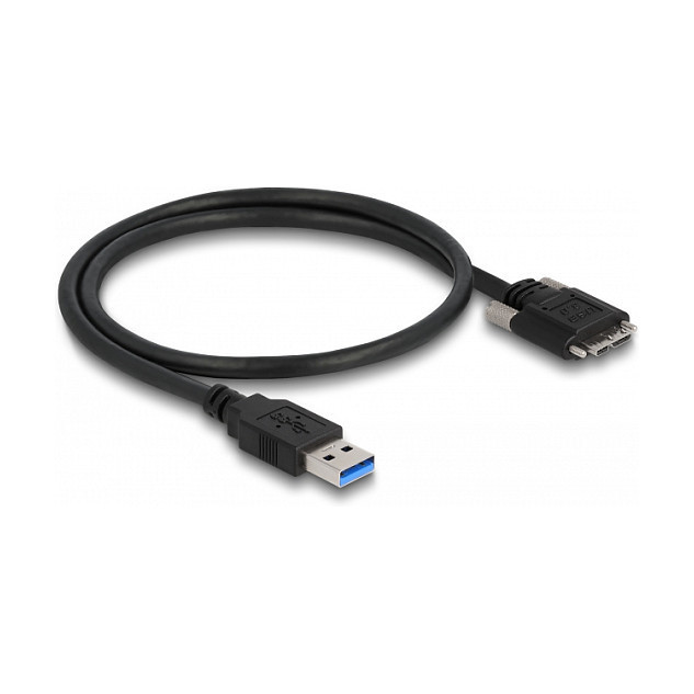 "DeLOCK Cable USB 3.0 Type-A male to Type Micro-B male with screws 0.5 m. Cable length: 0.5 m. Connector 1: USB A, Connector 2: Micro-USB B, USB version: USB 3.2 Gen 1 (3.1 Gen 1), Maximum data transfer rate: 5 Gbit/s, Product colour: Black"\n"This USB cable by Delock allows you to connect devices with a USB 3.0 Type Micro-B connector to a PC or laptop with a free USB port.