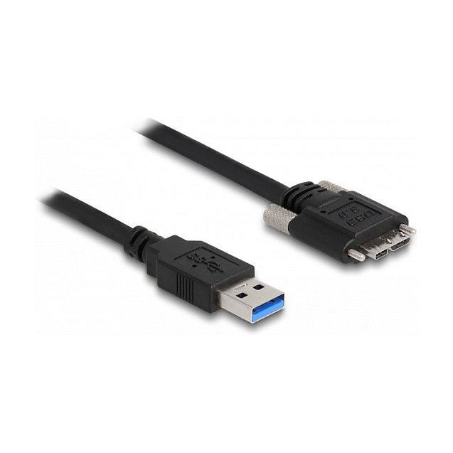 "DeLOCK Cable USB 3.0 Type-A male to Type Micro-B male with screws 1 m. Cable length: 1 m. Connector 1: USB A, Connector 2: Micro-USB B, USB version: USB 3.2 Gen 1 (3.1 Gen 1), Maximum data transfer rate: 5 Gbit/s, Product colour: Black"\n"This USB cable by Delock allows you to connect devices with a USB 3.0 Type Micro-B connector to a PC or laptop with a free USB port.