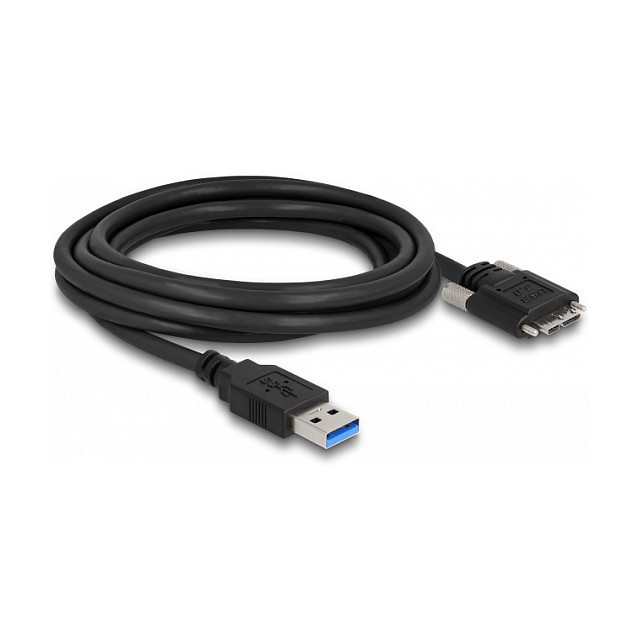"DeLOCK Cable USB 3.0 Type-A male to Type Micro-B male with screws 3 m. Cable length: 3 m. Connector 1: USB A, Connector 2: Micro-USB B, USB version: USB 3.2 Gen 1 (3.1 Gen 1), Maximum data transfer rate: 5 Gbit/s, Product colour: Black"\n"This USB cable by Delock allows you to connect devices with a USB 3.0 Type Micro-B connector to a PC or laptop with a free USB port.
