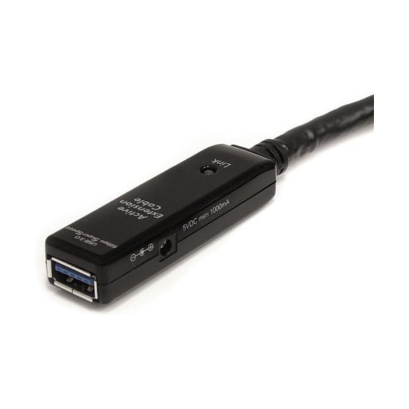 "StarTech.com 5m USB 3.0 Active Extension Cable - M/F. Cable length: 5 m. Connector 1: USB A, Connector 2: USB A, USB version: USB 3.2 Gen 1 (3.1 Gen 1), Connector contacts plating: Nickel, Product colour: Black"\n"Extend the distance between a computer and a USB 3.2 Gen1 device by an additional 5 meters