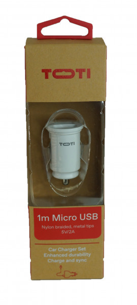 TOTI Dual USB Car Charger with micro usb cable 1m 2.1 A, White