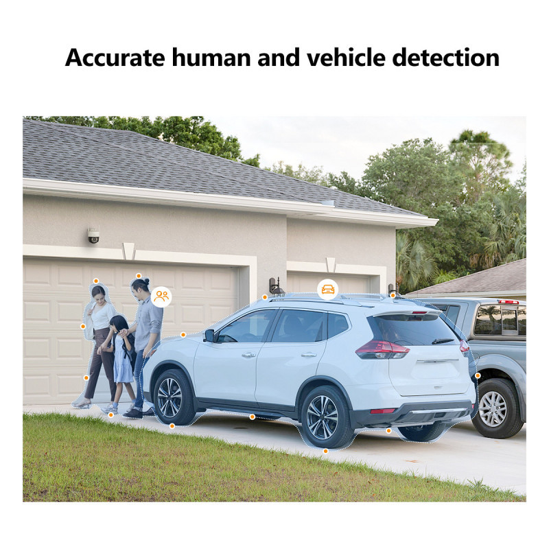 Powered by IMOU SENSE™, the newly upgraded AI human and vehicle detection can effectively reduce false alarms caused by mosquitoes and tree shaking. The effective detection range can reach 22 meters for persons and 44 meters¹ for cars, respectively ensuring that detection is truly ""accurate"".