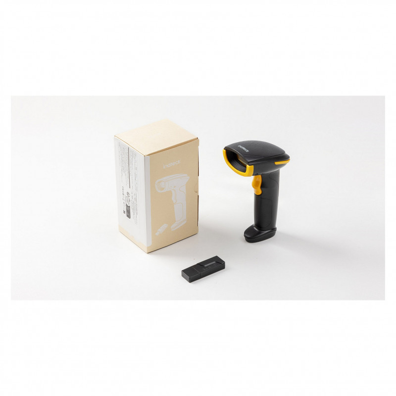 "Inateck BCST-23. Type: Handheld bar code reader, Scanner type: 2D, Sensor type: CMOS. Connectivity technology: Wired & Wireless, Standard interfaces: Bluetooth, USB. Product colour: Black, Yellow, Housing material: Acrylonitrile butadiene styrene (ABS), Polycarbonate (PC), Thermoplastic urethane (TPU). Power source type: Battery, USB, Battery capacity: 2000 mAh. Weight: 205 g, Width: 90.9 mm, Depth: 68.3 mm"\n"Super Decoding Capability: Utilizing a 300,000-pixel 2D module for recognition, it supports most 1D and 2D barcodes. It quickly reads blurry, damaged, dirty, wrinkled, and distorted barcodes under strong and dim lighting conditions. (Inverted DM barcodes not supported.)