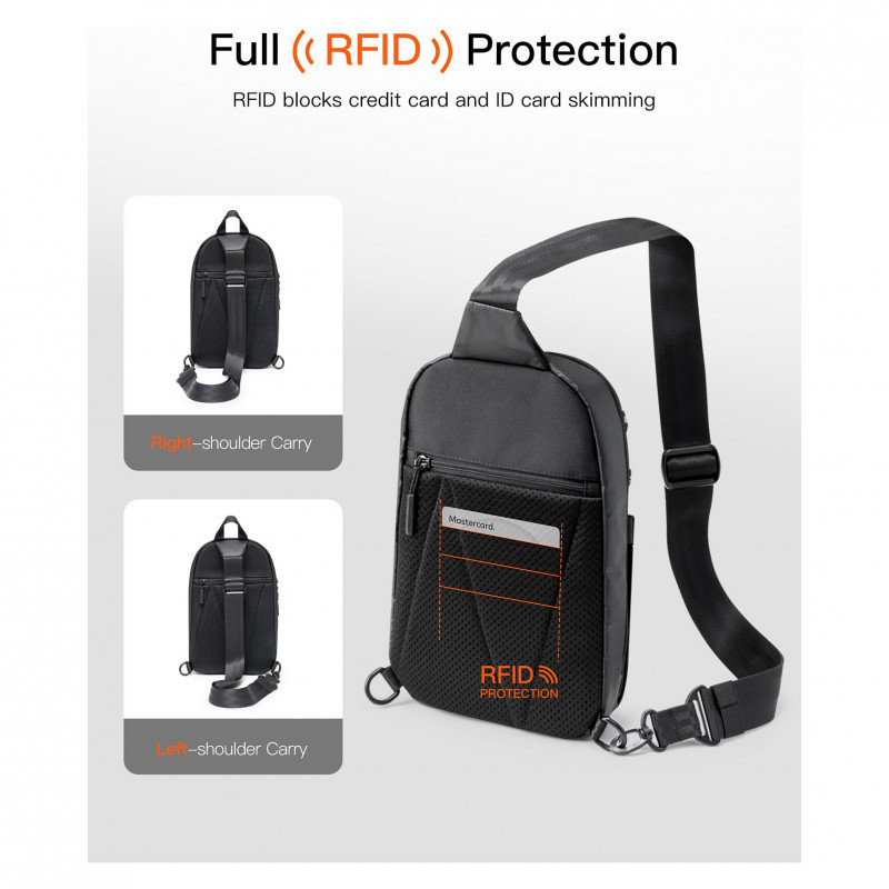 Comprehensive Protection: Made of premium laminated fabric and 900D water-resistant polyester, the chest bag offers splash protection. The device compartment is padded to protect devices such as iPad Mini and Kindle. The back hidden zipper pocket is suitable for valuables such as phones and cash, and includes three card slots with RFID blocking to prevent skimming and secure your credit cards. The front drawstring also features night-reflective strips for enhanced safety during nighttime travel