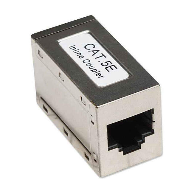 "Intellinet Inline Coupler, Cat5e, FTP, Modular, 8P8C Female to 8P8C Female, Silver. Connector(s): RJ-45, Product colour: Silver, Material: Metal. Weight: 32 g, Width: 17.8 mm, Depth: 36 mm. Quantity per pack: 1 pc(s)"\n"- Used to extend the length of shielded Cat5e cables;