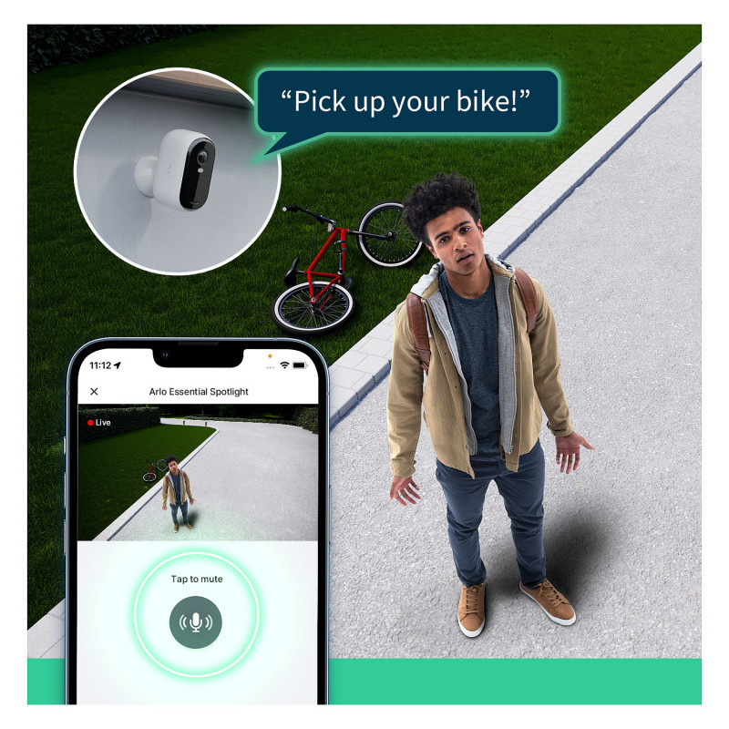 "Arlo Essential FHD Outdoor Security Camera & 2-Wall Mount, 2-pack. Type: IP security camera, Placement supported: Indoor & outdoor, Connectivity technology: Wired & Wireless. Mounting type: Ceiling/Wall/Desk, Product colour: Black, White. Maximum resolution: 1080 x 1920 pixels, Total megapixels: 2 MP. Power source type: Battery, USB"\n"The 4-in-1 security camera to help make your home feel safer. Install in minutes and get a wireless video system that lets you stream live colour video night and day. Or choose an Arlo Secure Subscription (sold separately) to save video clips in the cloud and look back at them anytime in the app. Our compact camera instantly detects motion and sends you real-time alerts. Speak to visitors as if they were infront of you with two-way audio and with the built-in intruder alarm and motion spotlight quickly scare away trespassers. Plus, unlock Theft Protection with a Secure Subscription (sold separately) so if your camera is stolen we’ll replace it - for free.