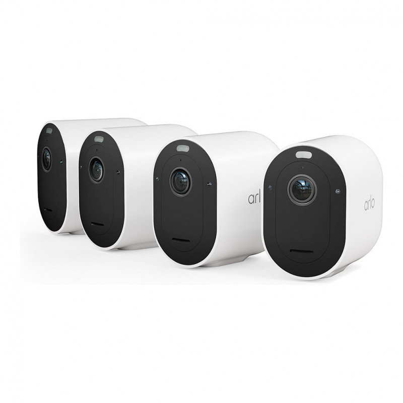 "Arlo Pro 5 2K+ Outdoor Security Camera, 4-cam. Type: IP security camera, Placement supported: Indoor & outdoor, Connectivity technology: Wired & Wireless. Mounting type: Ceiling/wall, Product colour: Black, White. Maximum resolution: 1440 x 2560 pixels, Total megapixels: 4 MP. Power source type: Battery. Packaging content: (4) Arlo Pro 5 Spotlight Camera (1) Wall Mount (4) Rechargeable Battery (1) Magnetic Charging..."\n"Capture more than 60 billion colours with our advanced 2K+ colour night vision that’s over 100X better than a human eye. Protect your home day and night and stream live videos, Or choose an Arlo Secure Subscription (sold separately) to save video clips in the cloud and look back at them anytime in the app.With up to 30% more battery life and dual band connectivity, instantly connect direct to any Wi-Fi router for 24/7 protection. And if you do spot intruders trigger the powerful spotlight that illuminates faces from 7m away or scare them off with the loud siren. Plus unlock Theft Protection Insurance with a Secure Subscription (sold separately) and if your camera is stolen we will replace it for free!