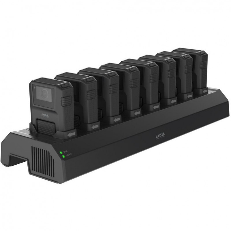"Axis W701 Mk II. Product type: Docking station, Product colour: Black, Compatibility: W101 Body Worn Camera, W120 Body Worn Camera, W800 System Controller. Weight: 860 g. Quantity per pack: 1 pc(s)"\n"Drop your AXIS body worn cameras into AXIS W700 Mk II Docking Station 8-bay to offload and recharge, so they’re ready to grab and go the next time you are.