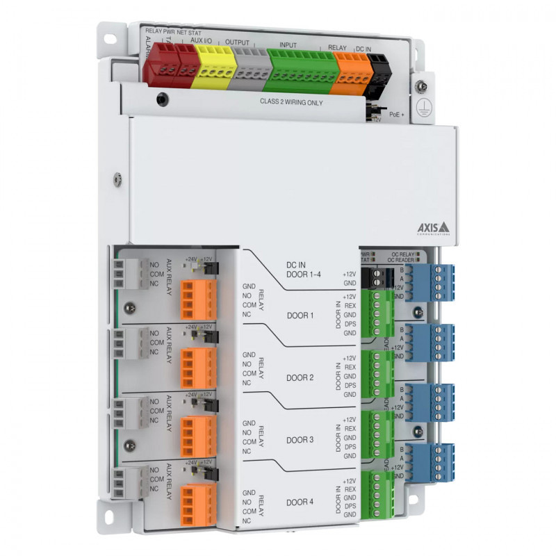 This compact barebone device offers a smaller footprint design than most door controllers on the market. It’s designed for centralized installation with Axis or third-party cabinets. With out-of-the-box support for OSDP readers and an optional accessory for Wiegand readers, this scalable and future-proof door controller is optimized for both small and large installations. You can store up to 250k credentials and 250k event logs on the device. What’s more, it can be used together with AXIS Camera Station Secure Entry or partner solutions to provide a scalable, all-in-one video and access control management system.