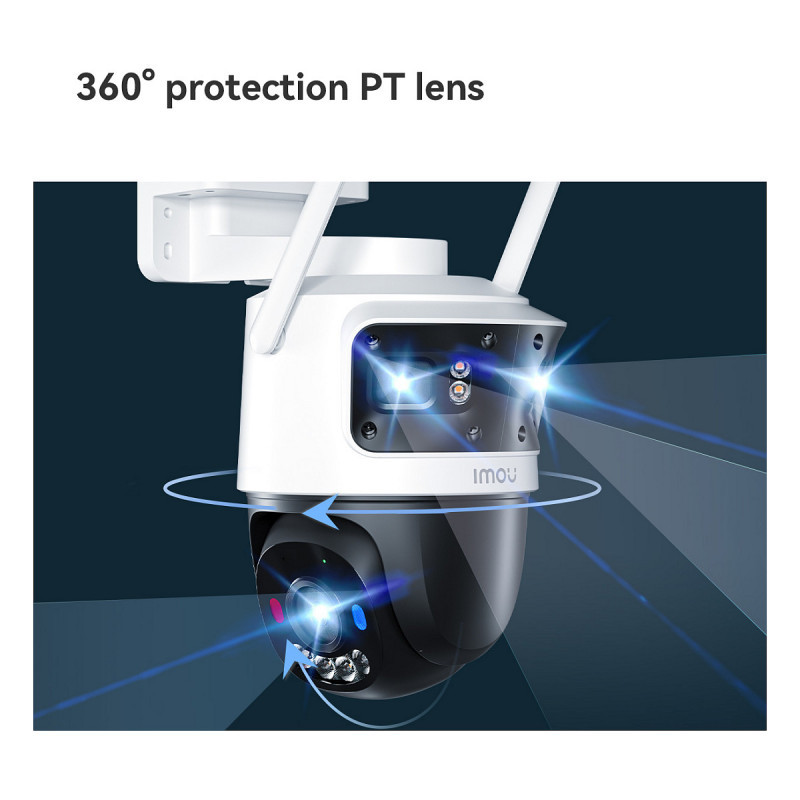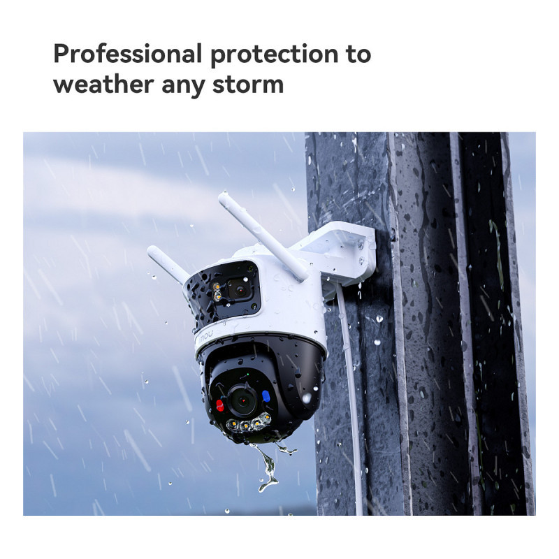 "Imou Cruiser Triple. Type: IP security camera, Placement supported: Outdoor, Connectivity technology: Wired & Wireless. Mounting type: Ceiling/wall, Product colour: Black, White, Form factor: Turret. Lens viewing angle, horizontal: 51°, Lens viewing angle, vertical: 28°, Lens viewing angle, diagonal: 60°. Sensor type: CMOS, Optical sensor size: 25.4 / 3.06 mm (1 / 3.06""). Digital zoom: 8x, Focal length range: 6 mm"\n