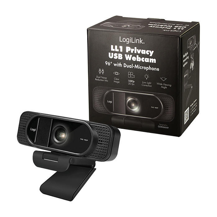 "LogiLink UA0381. Maximum video resolution: 1920 x 1080 pixels, Camera HD type: Full HD, Maximum frame rate: 30 fps. Interface: USB 2.0, Product colour: Black, Mounting type: Clip. Windows operating systems supported: Windows 10, Windows 7, Windows 8, Windows XP, Mac operating systems supported: Mac OS X 10.6 Snow Leopard, Linux operating systems supported: Ubuntu 10.04. Width: 90 mm, Depth: 47 mm, Height: 62 mm. Package width: 113 mm, Package depth: 66 mm, Package height: 115 mm"\n"Product information ""Full HD webcam, 96°, dual microphone, privacy cover"" from LogiLink