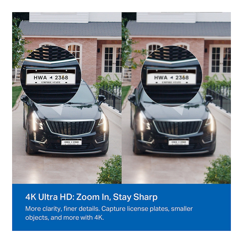 4K resolution has 4× the number of pixels compared to 1080p. This results in greater image clarity, finer details, and a sharper picture. Capture license plates, smaller objects, and more with 4K.