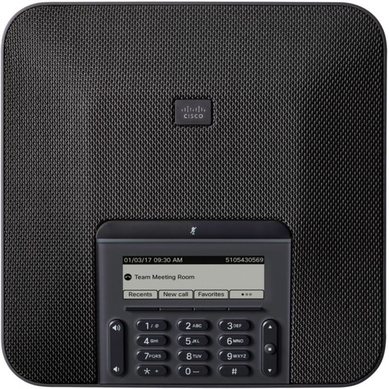 "Cisco IP Conference Phone 7832 with Multiplatform Firmware, 360-Degree Microphone Coverage, 3.4-inch Monochrome LCD, Class 2 PoE, Supports 1 Line, 1-Year Limited Hardware Warranty (CP-7832-3PCC-K9=). Product type: IP Phone, Product colour: Black. Lines quantity: 1 lines. Display: LCD, Display diagonal: 8.64 cm (3.4""), Display resolution: 384 x 128 pixels. Voice codecs: G.711a, G.711u, G.722, G.729A, G.729ab, OPUS, iLBC. Certification: CE"\n"The Cisco IP 7832 Conference Phone delivers intuitive conference calling with HD audio performance and 360-degree microphone coverage in a sleek, compact form. Ideal for both small conference rooms and the private offices of managers and executives, this voice over IP (VoIP) phone is designed for ease of use and ‘always-on’ reliability with encrypted voice communications for unparalleled security."