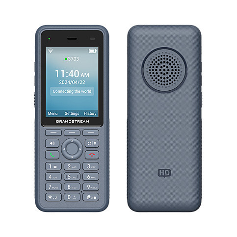 "Grandstream Networks WP836. Product type: IP Phone, Product colour: Blue, Handset type: Wireless handset. Lines quantity: 3 lines, Phonebook capacity: 1000 entries. Volume control: Buttons. Display: LCD, Display diagonal: 7.11 cm (2.8""), Display resolution: 240 x 320 pixels. Wi-Fi standards: 802.11a, 802.11b, 802.11g, Wi-Fi 4 (802.11n), Wi-Fi 5 (802.11ac), Security algorithms: 256-bit AES, 802.1x RADIUS, MD5, SRTP, TLS"\n"Ruggedized Cordless Wi-Fi IP Phone with Integrated Dual-Band Wi-Fi 6 802.11a/b/g/n/ac/ax and 10-hour talk time