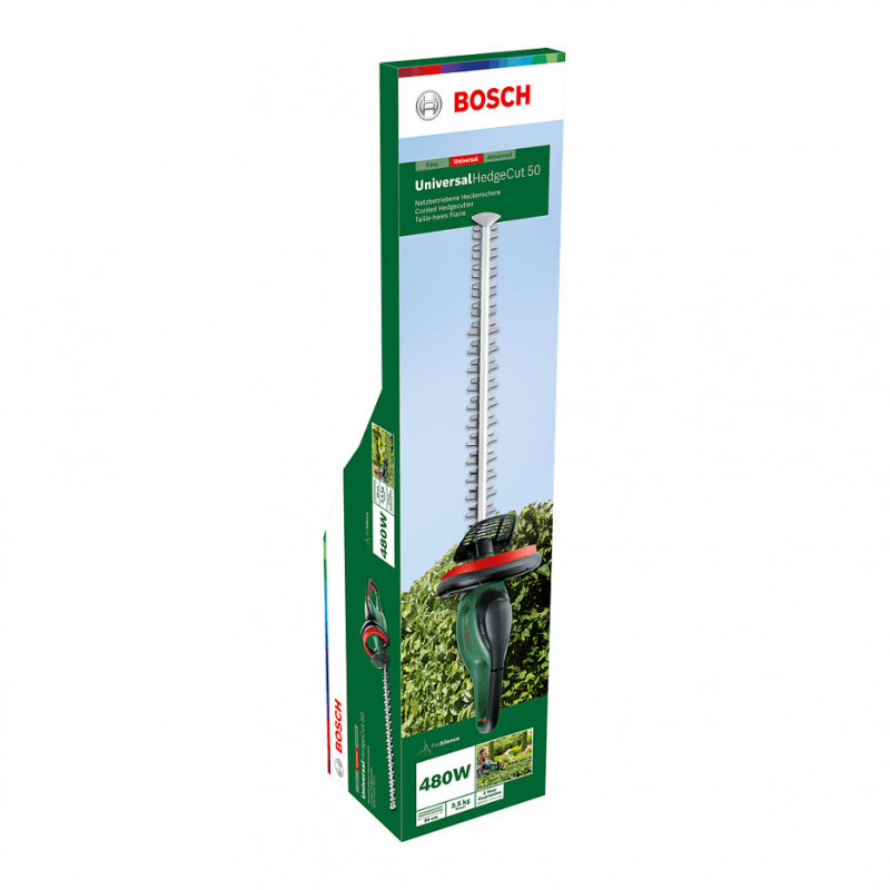 Bosch UniversalHedgeCut 50 Elektro-Heckenschere – tai galinga ir patogi elektrinė gyvatvorių žirklė, skirta vidutinio dydžio gyvatvorių ir krūmų priežiūrai. Su 480 W varikliu ir 50 cm ilgio peiliu, ši žirklė užtikrina greitą ir tikslų pjovimą, net ir storesnėms šakoms iki 26 mm storio.