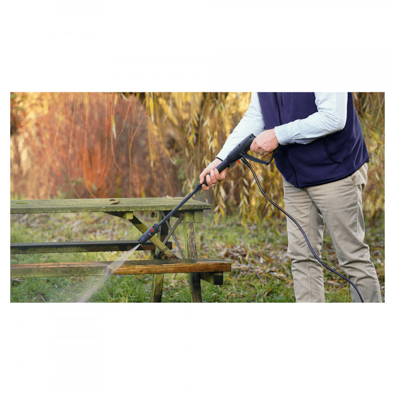 "Bosch UniversalAquatak 36V-100. Form factor: Upright, Power source: Electric, Hose length: 4 m. Maximum flow rate: 186 l/h, Working pressure (max): 100 bar, Minimum flow rate: 102 l/h. Battery voltage: 36 V, Battery capacity: 4 Ah, Battery life: 45 min. Width: 384 mm, Depth: 207 mm, Height: 532 mm. Country of origin: Germany"\n