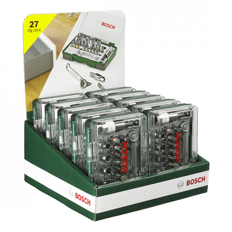 Bosch Prom 27 dalių suktuvo antgalių ir terkšlės rinkinys – tai aukštos kokybės ir patogus komplektas, skirtas tiksliai ir patikimai sukti, prisukti bei atsukti įvairaus tipo varžtus. Šis rinkinys tinka tiek profesionalams, tiek namų meistrams, atliekantiems remonto ar surinkimo darbus.