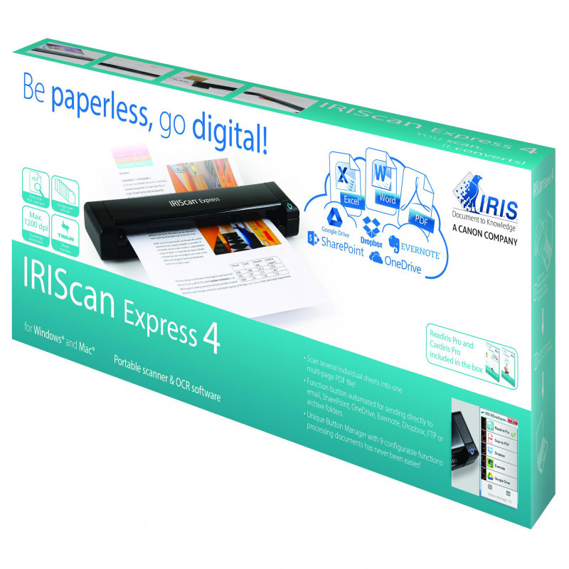 The IRIScanTM Express 4 is a powerful combination of a fully portable color scanner and a breakthrough and easy-to-use OCR software. Compact, light- weight and USB-powered, one click PDF at fingertip, it is the fastest single sheet fed por-table scanner on the market, and is designed to be carried any- where.
