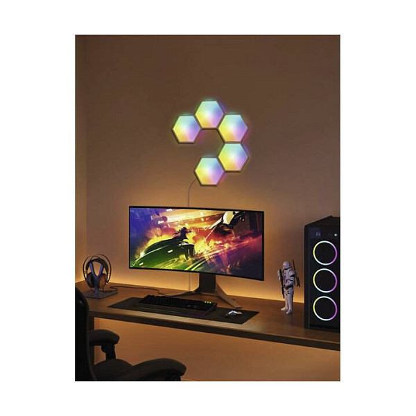 "Govee RGBIC Glide Hexa Light Panels 5 pcs. Type: Smart wall light, Interface: Wi-Fi/Bluetooth, Product colour: White. Energy efficiency class: G, Energy consumption per 1000 hours: 23 kWh, Energy efficiency scale: A to G. Height: 100 mm, Length: 230 mm. Quantity per pack: 5 pc(s)"\n