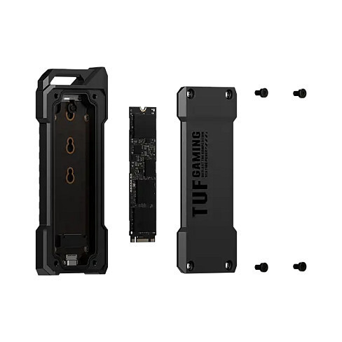 "ASUS ESD-T1A/BLK/G/AS//. Product type: SSD enclosure. Number of storage drives supported: 1, Storage drive size: M.2, Supported storage drive interfaces: M.2, PCI Express, Serial ATA. Data transfer rate: 10 Gbit/s. Product colour: Black. USB connector type: USB Type-C"\n"Ultrafast performance: USB-C 3.2 Gen 2x1 interface for up to 10 Gbps transfer speeds, while SATA offers up to 6 Gbps