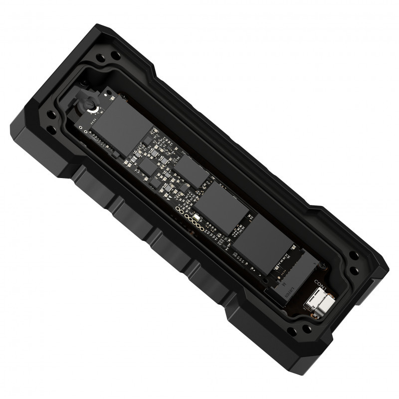 Engineered for unmatched durability, TUF Gaming A2 is the ultimate storage solution for gamers seeking speed and reliability. USB-C® 3.2 Gen 2x2 connectivity enables data transfer speeds of up to 20Gbps—twice that of TUF Gaming A1! With IP68-rated water- and dust-resistance plus durability that meets U.S. MIL-STD-810H standards, TUF Gaming A2 keeps the SSD safe in almost any environment. Additionally, a silicone-rubber exterior provides superior on-the-go protection, further safeguarding the SSD. Inside, an efficient thermal management system delivers outstanding cooling, while the Q-Latch mechanism allows for easy, tool-free SSD installation. With broad compatibility across PC, Mac, mobile devices, and the latest game consoles, TUF Gaming A2 is perfect for anyone looking to maintain an extensive library of games."