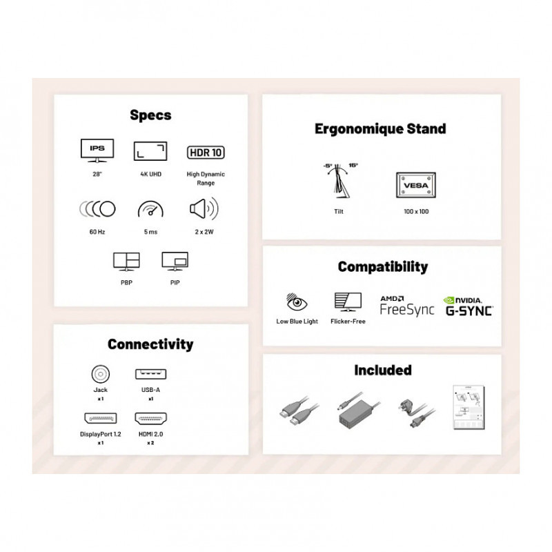"JAPANNEXT JN-I280UHD60F-P. Display diagonal: 71.1 cm (28""), Display resolution: 3840 x 2160 pixels, HD type: 4K Ultra HD, Display technology: LCD, Response time: 5 ms, Native aspect ratio: 16:9, Viewing angle, horizontal: 178°, Viewing angle, vertical: 178°. Built-in speaker(s). VESA mounting. Product colour: Black"\n