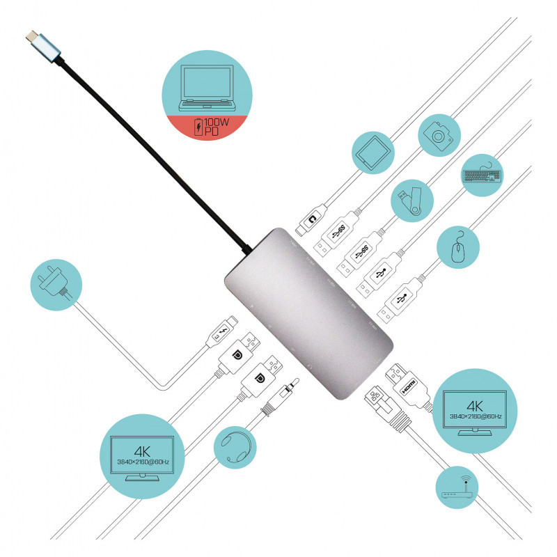 The new USB-C port has a number of tricks up its sleeve! Provided your laptop or tablet supports power delivery through this port, you gain the ability to connect all you need (data transfer, Internet, video and power supply) using a single cable.