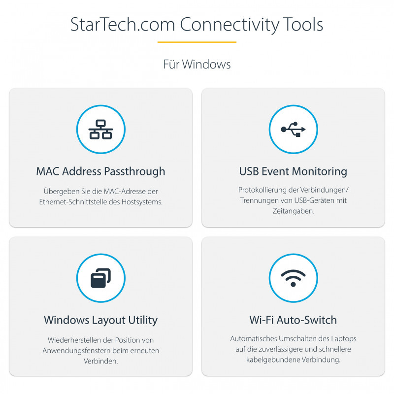 Developed to improve performance and security, StarTech.com Connectivity Tools is the only software suite on the market that works with a wide range of IT connectivity accessories. The software suite includes: