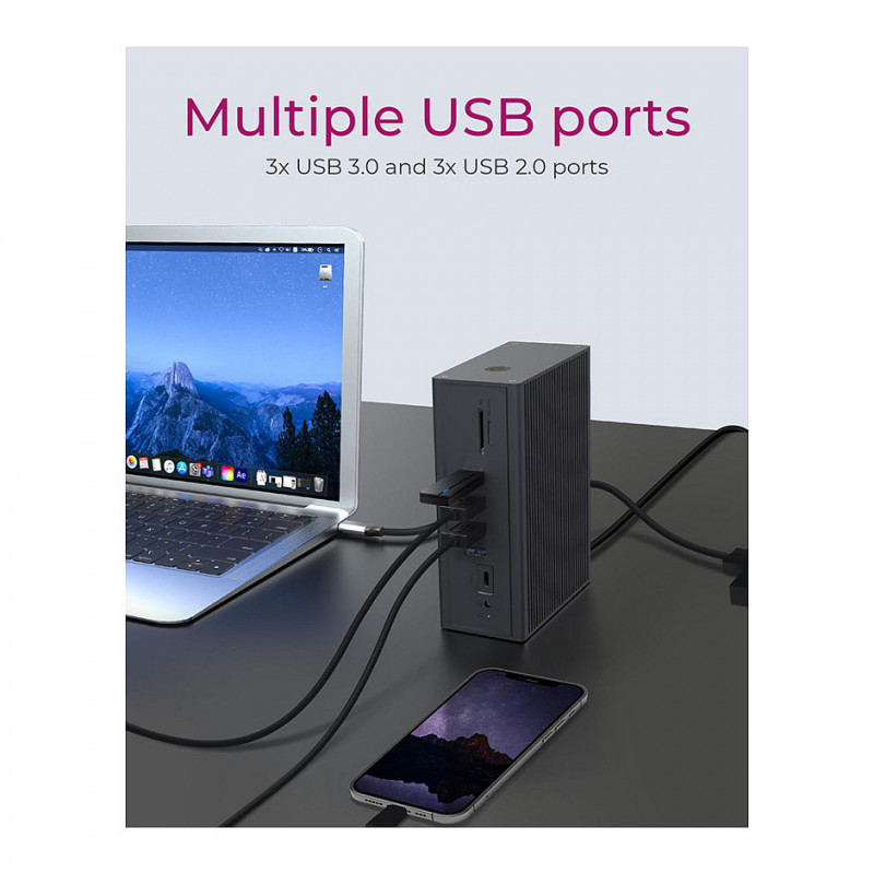 "ICY BOX IB-DK2262AC. Connectivity technology: Wired, Host interface: USB 3.2 Gen 1 (3.1 Gen 1) Type-C, USB Power Delivery up to: 55 W. Ethernet LAN data rates: 10,100,1000 Mbit/s. Product colour: Anthracite, Compatible memory cards: MicroSD (TransFlash), SD, HD type: 4K Ultra HD. Power source type: AC, AC input voltage: 100-240 V, AC input frequency: 50 - 60 Hz. Windows operating systems supported: Windows 10, Windows 11, Windows 8, Other operating systems supported: ChromeOS"\n"Rugged aluminium design