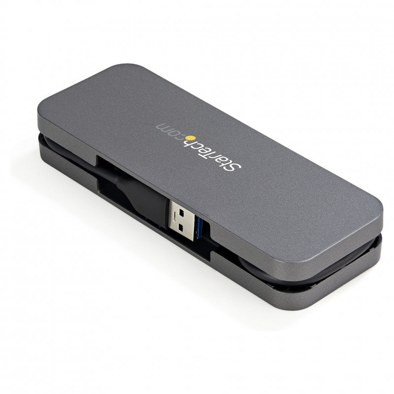 This 4 Port USB Hub enables you to connect four SuperSpeed USB 3.2 Gen 1 (5 Gbps) peripherals to your USB-A laptop or computer, an ideal solution for adding USB ports to a device that has limited USB ports available. It features a wrap-around cable manager, allowing you to tuck away the built-in cable for easy portability.