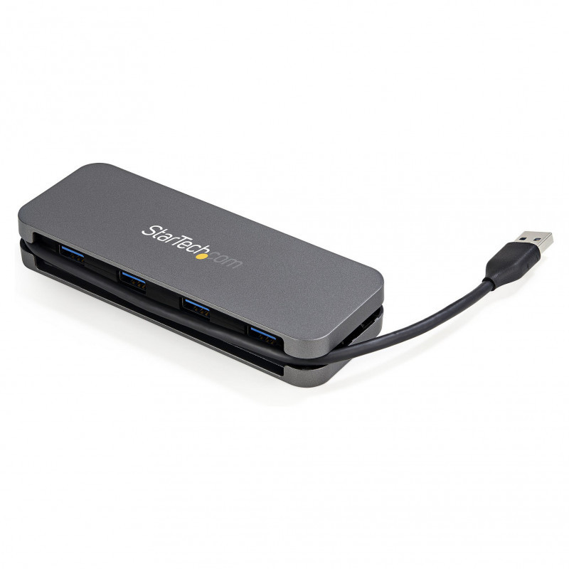 "StarTech.com 4 Port USB 3.0 Hub - USB-A to 4x USB-A - SuperSpeed 5Gbps Portable USB 3.1 Gen 1 Type-A Hub - USB Bus Powered - Laptop/Desktop USB Hub with Long Cable 28cm & Cable Management~4 Port USB 3.0 Hub - USB-A to 4x USB-A - SuperSpeed 5Gbps Portable USB 3.2 Gen 1 Type-A Hub - USB Bus Powered - Laptop/Desktop USB Hub with Long Cable 28cm & Cable Management. Host interface: USB 3.2 Gen 1 (3.1 Gen 1) Type-A, Hub interfaces: USB 3.2 Gen 1 (3.1 Gen 1) Type-A. Data transfer rate: 5000 Mbit/s, Product colour: Black, Grey, Housing material: Plastic. Width: 50 mm, Depth: 135 mm, Height: 20 mm. Quantity per pack: 1 pc(s), Package width: 170 mm, Package depth: 142 mm. Master (outer) case width: 360 mm, Master (outer) case length: 525 mm, Master (outer) case height: 345 mm"\n"USB A Hub | SuperSpeed USB 5Gbps (USB 3.2 Gen 1) | Built-in 11"" Host Cable