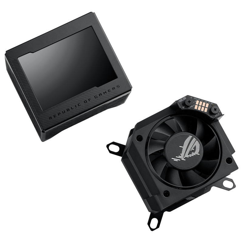 "ASUS ROG RYUJIN III WB. Type: Water block, Material: Copper, Product colour: Black. Width: 89 mm, Depth: 89 mm, Height: 107 mm. Quantity per pack: 1 pc(s), Package width: 124 mm, Package depth: 121 mm"\n"The ROG Ryujin III WB seamlessly merges cutting-edge cooling technologies with eye-catching customizable aesthetics. It boasts an Asetek-powered water block featuring 178 micro-cooling fins and a copper alloy cold plate for exceptional thermal efficiency, helping push the performance envelope of the latest Intel® and AMD CPUs. The embedded fan enhances airflow to the motherboard VRM, while a 3.5-inch LCD offers limitless customization options, allowing you to display hardware information or personalized GIF animations. The Ryujin III WB’s open-loop water-cooling design enables you to create a unique build that perfectly reflects your personal style.