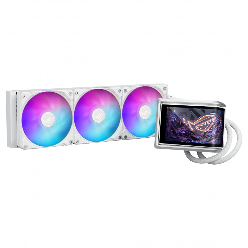 "ASUS ROG RYUO IV 360 ARGB WHT. Type: All-in-one liquid cooler, Fan diameter: 12 cm. Product colour: White"\n"ROG Ryuo IV 360 ARGB