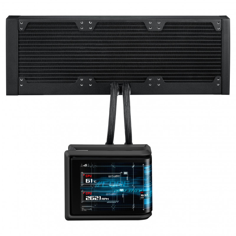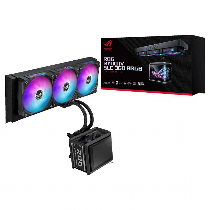 "ASUS ROG Ryuo IV SLC 360 ARGB. Type: All-in-one liquid cooler, Fan diameter: 12 cm. Product colour: Black"\n"ROG Ryuo IV SLC 360 ARGB