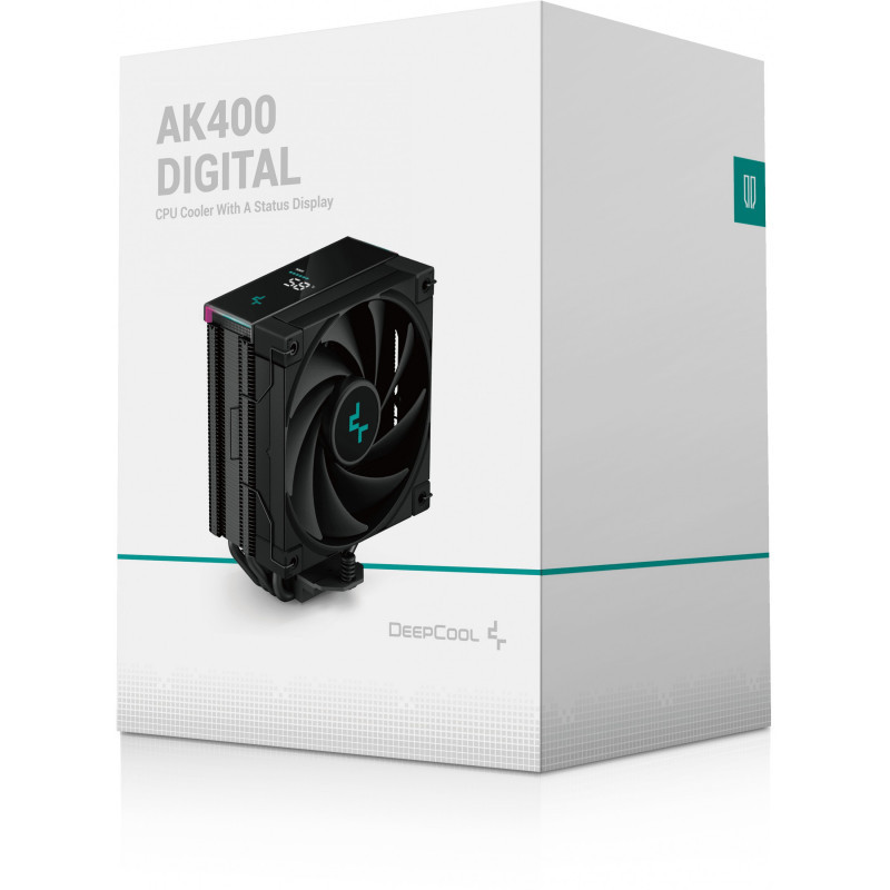 "DeepCool AK400 DIGITAL. Type: Air cooler, Fan diameter: 12 cm, Maximum air pressure: 2.19 mmH2O. Width: 126 mm, Depth: 97 mm, Height: 156 mm. Product colour: Black"\n"AK400 DIGITAL