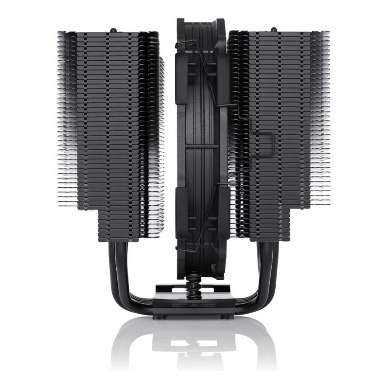 "Noctua NH-D15S chromax.black. Type: Cooler, Fan diameter: 14 cm, Rotational speed (min): 300 RPM, Rotational speed (max): 1500 RPM, Airflow: 140.2 m³/h, Bearing type: Self-Stabilising Oil-pressure Bearing (SSO). Voltage: 12 V. Width: 150 mm, Depth: 135 mm, Height: 160 mm. Product colour: Black"\n"The NH-D15S chromax.black is an all-black version of Noctua’s award-winning NH-D15S premium-quality quiet CPU cooler. Thanks to the same asymmetrical dual-tower heatsink design and single NF-A15 PWM fan, it stays true to the NH-D15S’s successful formula of fusing dual-tower performance with excellent RAM, case and PCIe compatibility. At the same time, the chromax.black version with its black fan and black coated heatsink combines these assets with a sleek stealth look. Topped off with the renowned SecuFirm2™ multi-socket mounting system, Noctua’s enthusiast-grade NT-H1 thermal compound and a full 6-year manufacturer’s warranty, the NH-D15S chromax.black is a premium choice for customers who seek a highly compatible dual-tower heatsink that looks just as great as it cools."