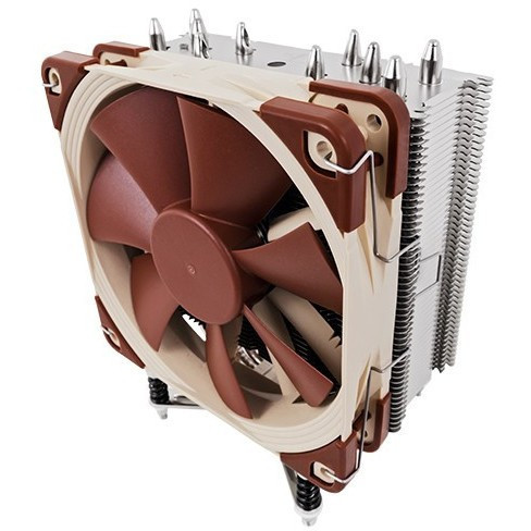"Noctua NH-U12DXI4. Type: Cooler, Fan diameter: 12 cm, Rotational speed (min): 300 RPM, Rotational speed (max): 1500 RPM, Airflow: 93.4 m³/h, Bearing type: Self-Stabilising Oil-pressure Bearing (SSO). Voltage: 12 V. Width: 125 mm, Depth: 71 mm, Height: 158 mm. Product colour: Beige, Brown, Silver"\n"Noctua's DX line of coolers has become a default choice in high performance quiet cooling solutions for Intel Xeon CPUs. The latest i4 revision supports LGA2011 (both Square ILM and Narrow ILM), LGA1356 and LGA1366 based Xeon platforms and the 12cm model NH-U12DX i4 comes equipped with Noctua’s award-winning NF-F12 Focused Flow™ fan with PWM for automatic speed control. Due to its slim design, the NH-U12DX i4 now provides easy access to the memory slots and better compatibility with tall modules. Fitted with the professional SecuFirm2™ mounting system and bundled with Noctua's industrial-grade NT-H1 thermal compound, the NH-U12DX i4 forms a complete premium quality package for quietly cooling Xeon based workstations and servers.
