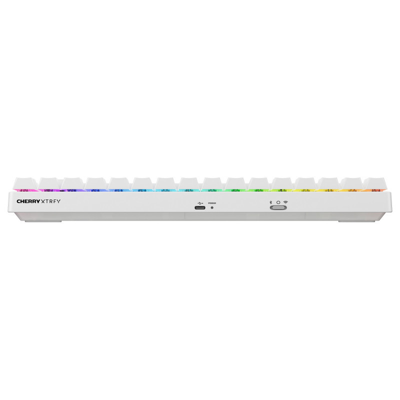 "CHERRY XTRFY K33 Compact Wireless. Keyboard form factor: 75%. Keyboard style: Straight. Connectivity technology: Wireless, Device interface: USB + RF Wireless + Bluetooth, Keyboard key switch: Mem-chanical key switch, Keyboard layout: QWERTZ, Keyboard number of keys: 84. Backlight type: RGB LED. Cable length: 1.5 m. Recommended usage: Gaming. Product colour: White"\n"MADE FOR NEW WINNERS