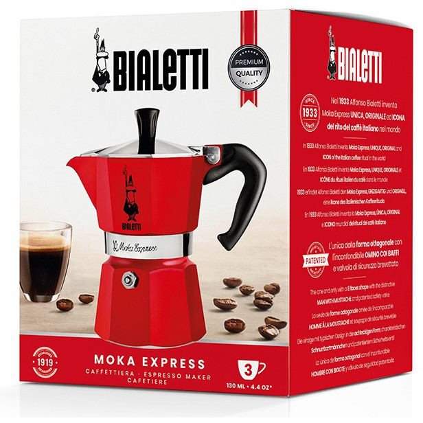 "Bialetti Moka Express. Product type: Moka pot, Product colour: Red, Housing material: Aluminium. Quantity per pack: 1 pc(s)"\n"Enduring quality & design