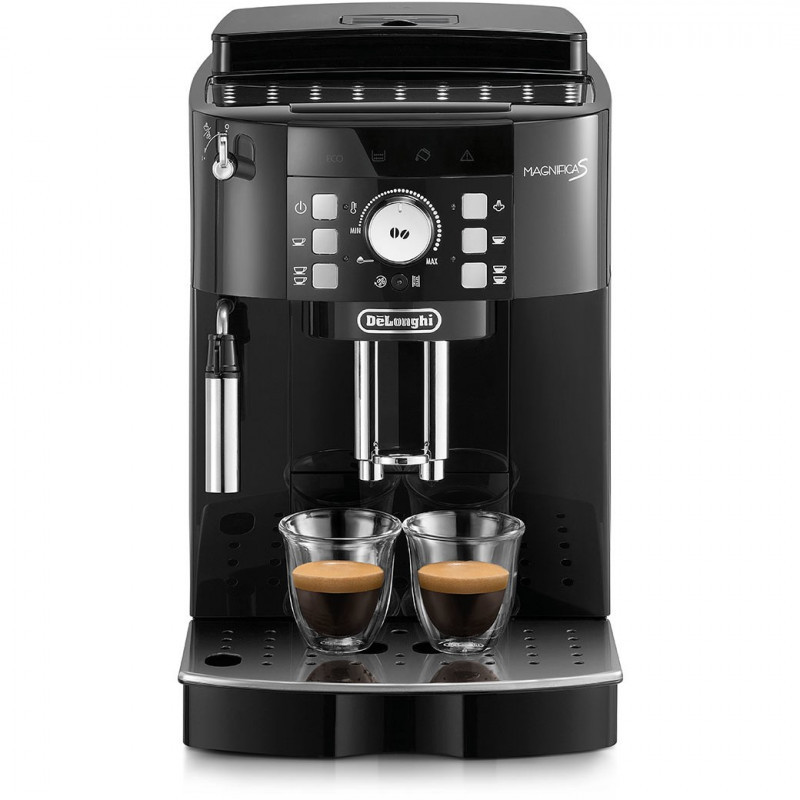 "De’Longhi Magnifica S ECAM 21.117.B. Product type: Espresso machine, Coffee maker type: Semi-auto, Water tank capacity: 1.8 L, Coffee input type: Coffee beans, Ground coffee, Reservoir for brewed coffee: Cup, Capacity in cups: 2 cups, Built-in grinder. Power: 1450 W. Product colour: Black"\n"Compact bean-to-cup machine, press a button and rotate the knob to customize your favorite coffee. Equipped with a manual cappuccino device ideal to produce a rich froth for your cappuccino, cup holder and water filter."