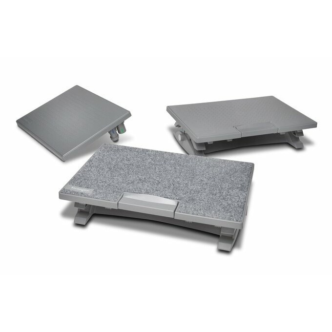 "Kensington SmartFit SoleMate Foot Rest. Product colour: Grey, Tilt angle range: 12 - 20°. Weight: 1.1 kg. Country of origin: Taiwan"\n"Improve posture, promote healthy circulation and support back and leg comfort with the SmartFit® SoleMate™ foot rest. Ergonomically designed to promote wellness and support increased productivity, the SmartFit® SoleMate™ foot rest incorporates Kensington’s patented SmartFit technology to simplify proper fit and allows users to adjust the height and angle for customised comfort. An ideal foot rest for modern home office or hot-desking environments.