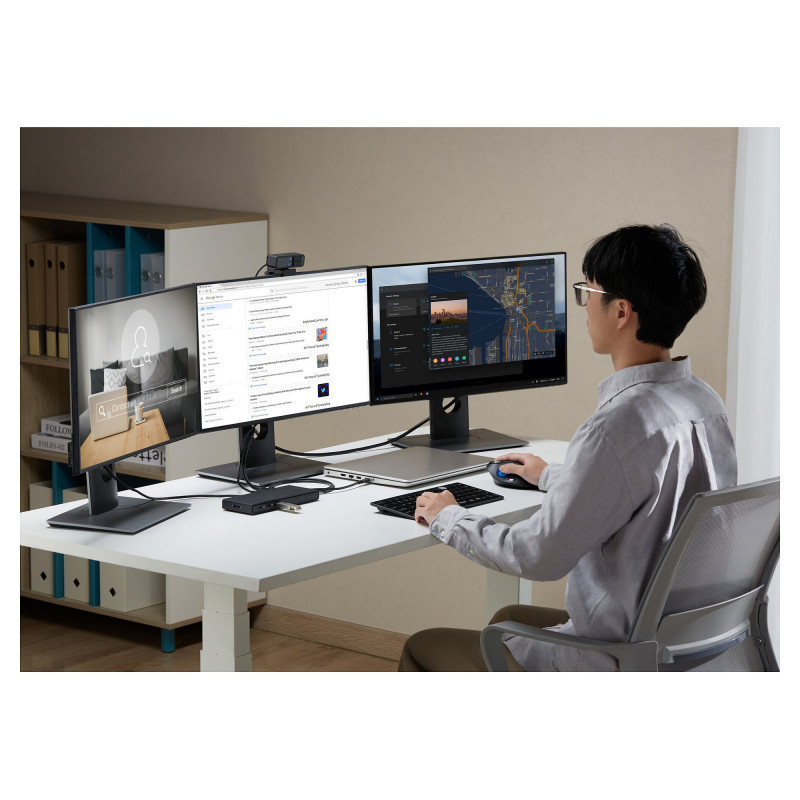 Aimed at reducing our environmental impact, all the plastic material used in the SD4842P is composed of up to 70% post-consumer recycled content (PCR). The SD4842P supports up to 3 external Full HD monitors (1080p @ 120Hz) via 1 x DP and 2 x HDMI® connections. The dock also eliminates the need for cumbersome adapters, charging connected accessories without relying on a host laptop connection.