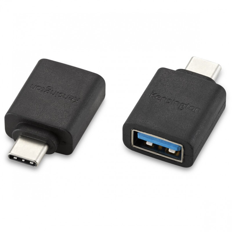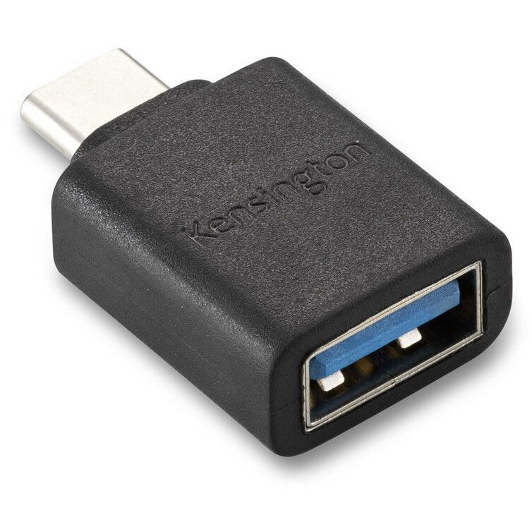 "Kensington CA1010 USB-C to USB-A M/F Adapter. Connector 1: USB-C, Connector 2: USB-A. Product colour: Black"\n"CA1010 USB-C to USB-A M/F Adapter allows users with older USB-A devices (thumb drives, headphones, charging cables etc.) to connect with newer USB-C devices (laptops, wall chargers etc.) - all while retaining support for performance features such as high-speed data transfer and fast charging. Plug & Play installation means it’s ready to go with no need for additional power source or driver downloads. Supports speeds up to 5 Gbps - 10 times faster than USB 2.0. Up to 5V/3A charging capability depending on the host device. Features premium construction, two-year limited warranty and compatibility with a range of devices and operating systems."