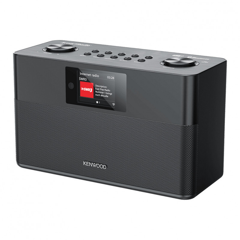 "Kenwood CR-ST100S-B. Radio type: Internet, Tuner type: Digital, Supported radio bands: DAB+, FM. RMS rated power: 20 W. Speaker type: Full range, Driver unit: 7.62 cm. Display type: TFT, Display diagonal: 5.84 cm (2.3""). Wi-Fi standards: 802.11a, 802.11b, 802.11g, Wi-Fi 4 (802.11n), Bluetooth range: 10 m"\n"WiFi-Smart-Radio receives radio stations over the Internet, DAB+ and FM. Additionally you can listen to your favourite music via Bluetooth or Spotify Connect."
