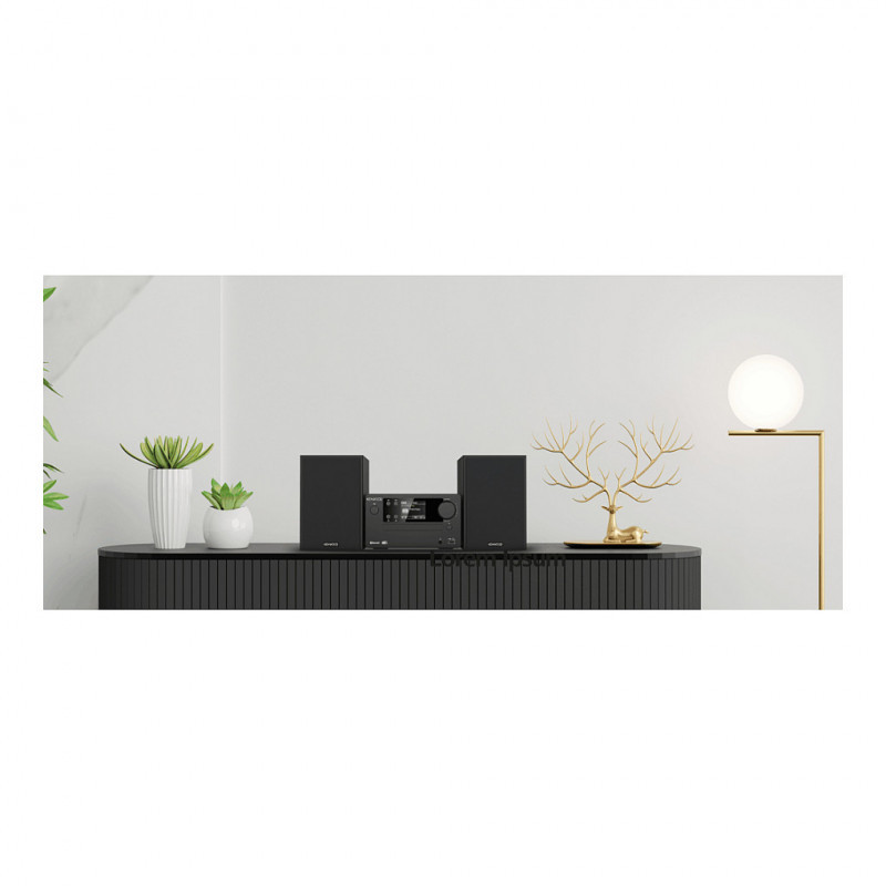 "Kenwood Electronics M-725DAB-B. Type: Home audio micro system, Product colour: Black. RMS rated power: 50 W, Speaker type: 2-way, Signal-to-Noise Ratio (SNR): 75 dB. Supported radio bands: DAB+, FM, RDS features: PTY, FM band range: 87.5 - 108 MHz. Display type: TFT. Bluetooth range: 10 m"\n"Small but powerful! The M-725DAB appears compact and convinces technically and visually! The high-quality metal chassis has a timelessly design and brilliant color display as well as a powerful amplifier and features such as CD player, USB, DAB+ or Bluetooth.