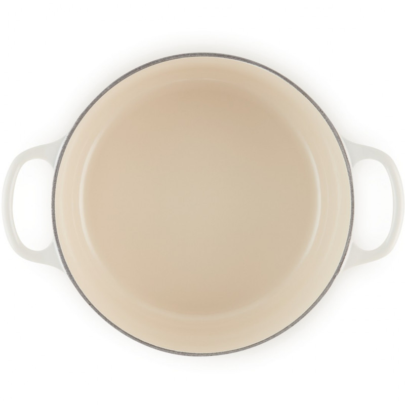 "Le Creuset 21177267164430. Capacity: 5.3 L, Product colour: White, Material: Cast iron. Width: 274 mm, Depth: 111 mm, Height: 172 mm"\n"A culinary classic, the Le Creuset casserole has been loved by cooks across the world for nearly a century. Perfectly designed for stews, roasts, soups, casseroles and baking, this iconic piece is your one-stop pot for memorable meals with an intense depth of mouth-watering flavour."