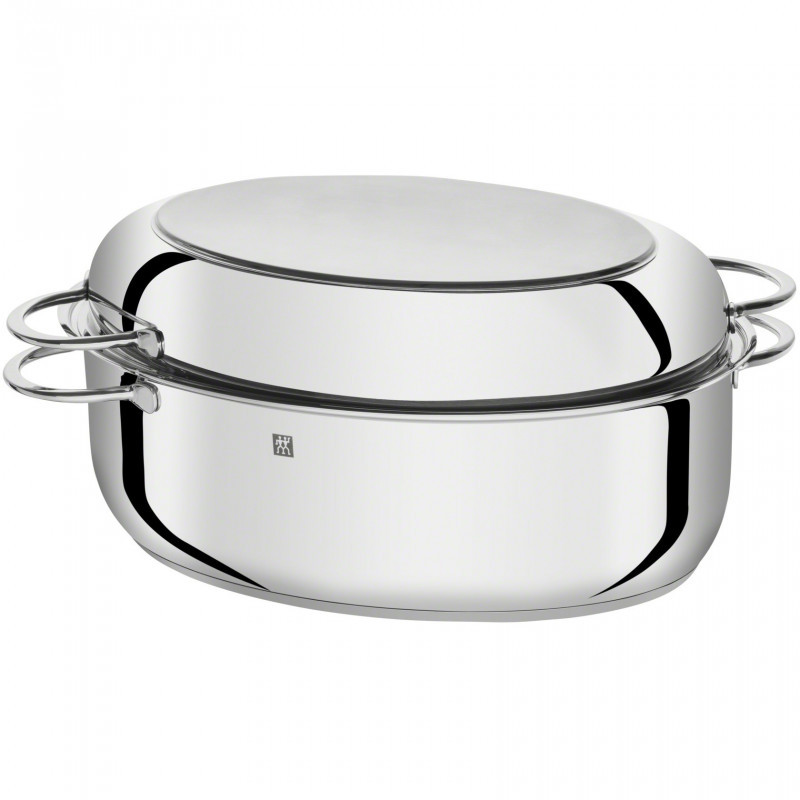 "ZWILLING Plus. Volume: 8.5 L, Product colour: Stainless steel, Material: Aluminium, Stainless steel. Width: 408 mm, Depth: 283 mm, Height: 192 mm"\n"The oval multi roaster is 38 cm long, offering enough space for large poultry, for example. It is ideal for frying and browning, because its aluminium base is sandwiched between layers of stainless steel. This structure ensures that the heat is evenly distributed, and all food is evenly cooked.