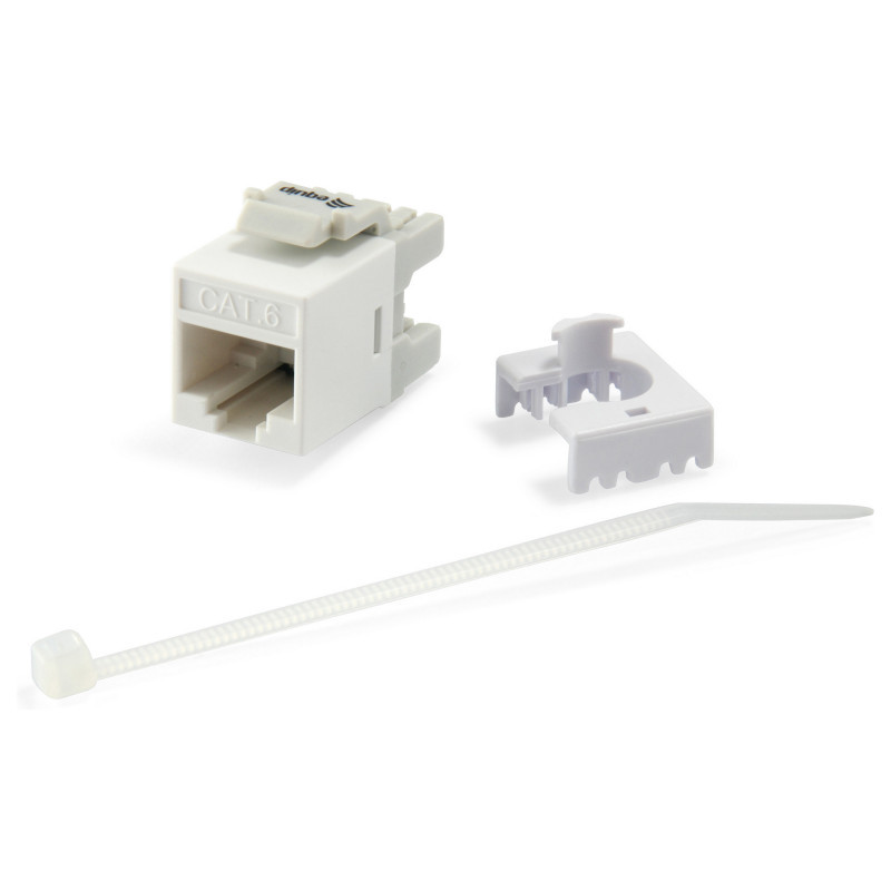 "Equip Cat.6 Unshielded Keystone Jack LSA, Slim Type, White. Construction type: Flat, Product colour: White, Connector 1: RJ-45. Width: 18 mm, Depth: 24.5 mm, Height: 41 mm. Package width: 203 mm, Package depth: 35 mm, Package height: 152 mm. Quantity per pack: 8 pc(s). Master (outer) case width: 480 mm, Master (outer) case length: 390 mm, Master (outer) case height: 253 mm"\n"- Slim type, specially designed for 1U 48-port Keystone Patch Panel (equip 769248)